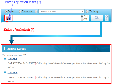 - To search a question mark (?) itself, enter a backslash (\) in front of the question mark (?) (see the figure below).