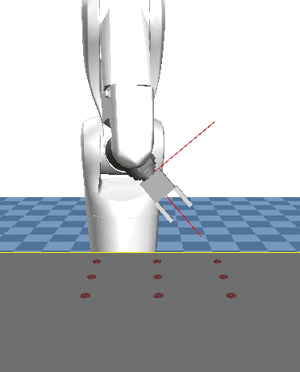 In the following movies, a robot moves to positions specified by return values of Pallet.CalcPos command, and then sphere-shaped objects appear at those positions.