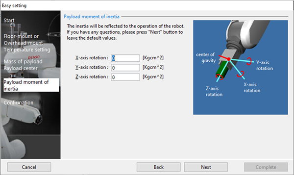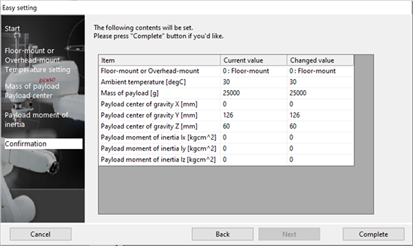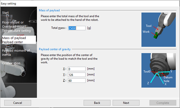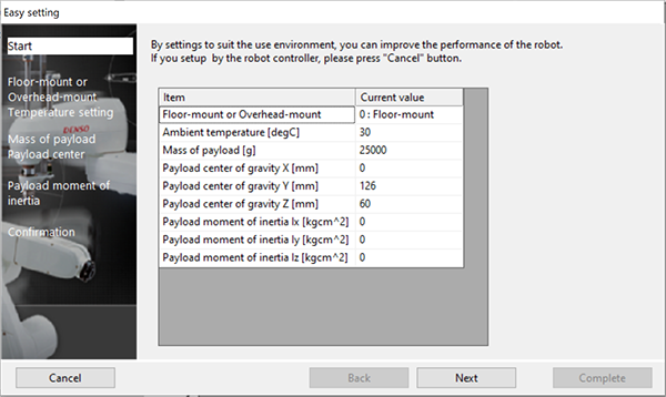 Robot can exert its highest performance with the settings optimized for the operation environment. With this Easy Setting, users can easily complete the robot settings suitable for the actual operation environment.