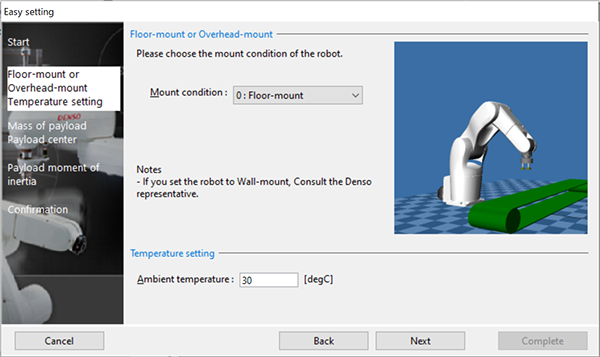 From the Mount condition, select [0: Floor-mount] or [1: Overhead-mount], and then click [OK].