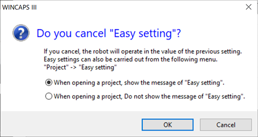 In this system message window, you can select whether the Easy Setting dialog is displayed at the next startup.