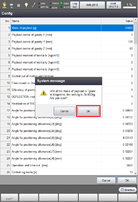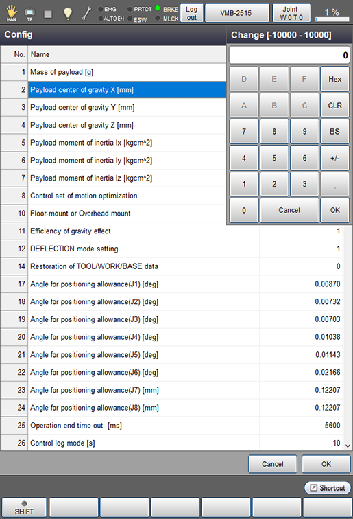 Perform the setting of "[3: Payload center of gravity Y [mm] ]" and "[4: Payload center of gravity Z [mm] ]" according to the same procedure.
