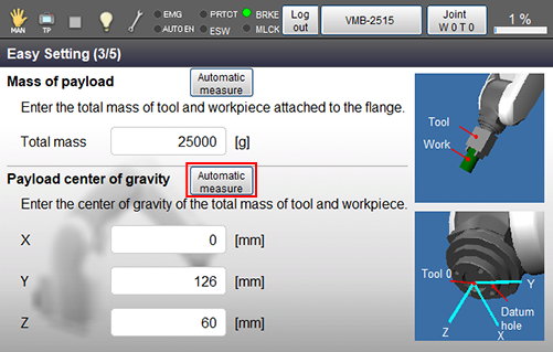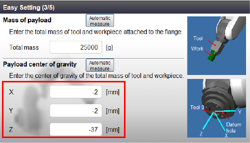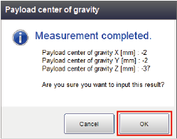 Press [Automatic measure] button next to Payload center of gravity.