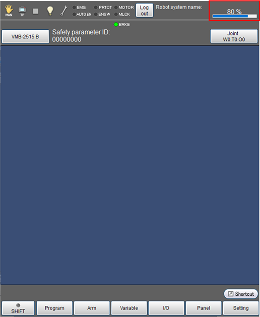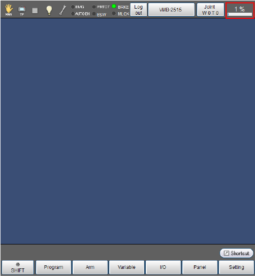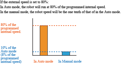 - Actual robot moves at [internal speed x external speed (%)] when in Auto mode. For example, if the external speed is set at 80%, the robot moves at internal speed x 80%.