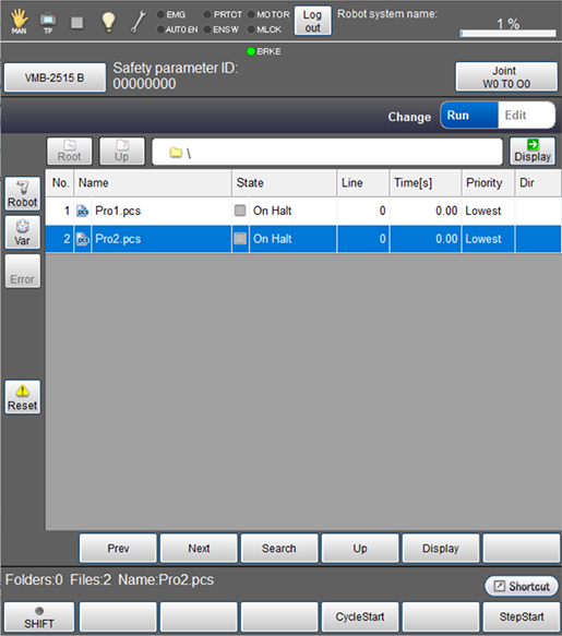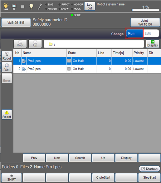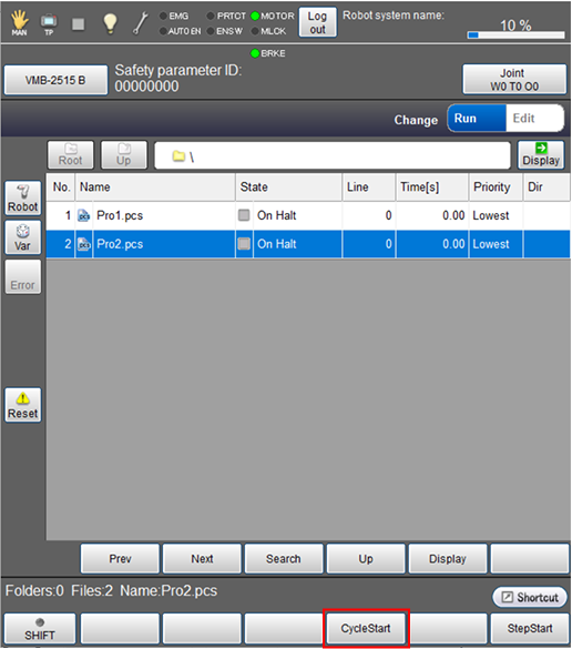 Run the program for one cycle in order to check the robot motion.