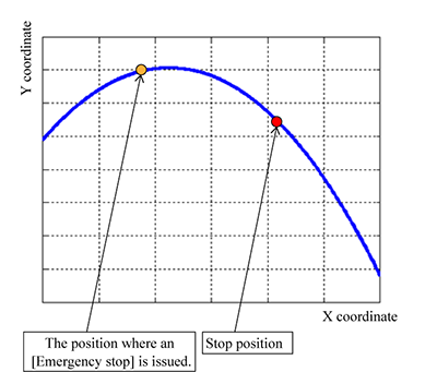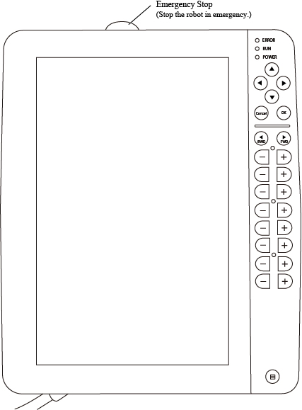 - Motor will be turned off at the emergency stop; however, robot may unexpectedly move by inertia.