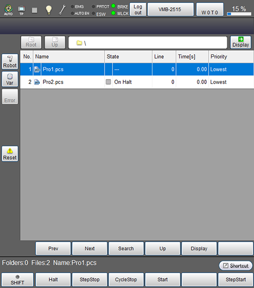 Executing the cycle stop stops the robot after executing the last step of the task program. This is used when the robot is continuously started.