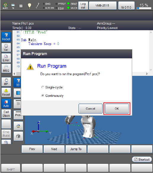 This method enables to simulate the robot motion of created programs by using the smart TP, without moving the actual robot.