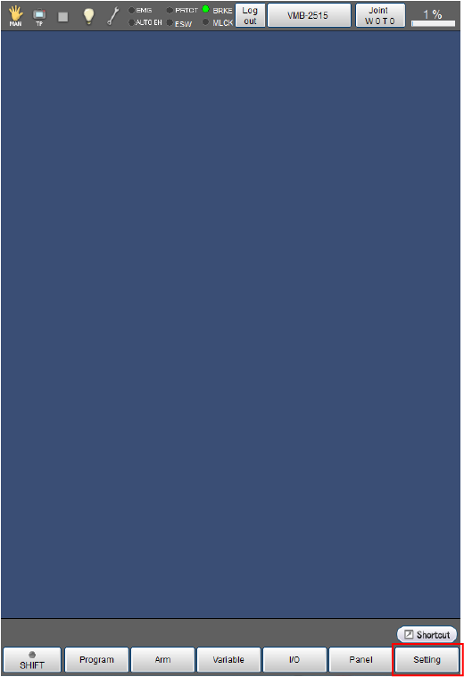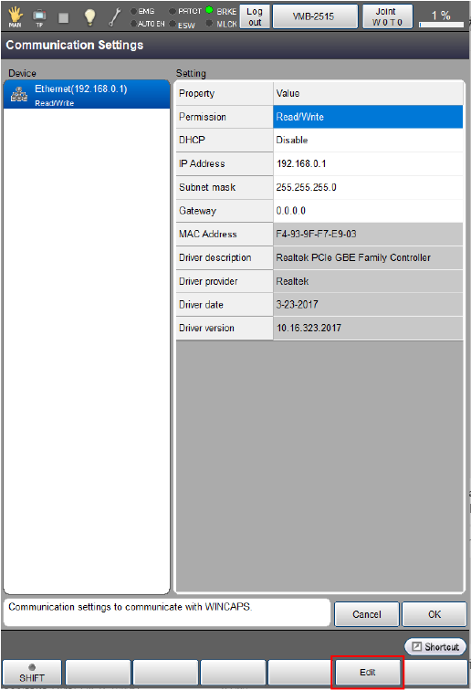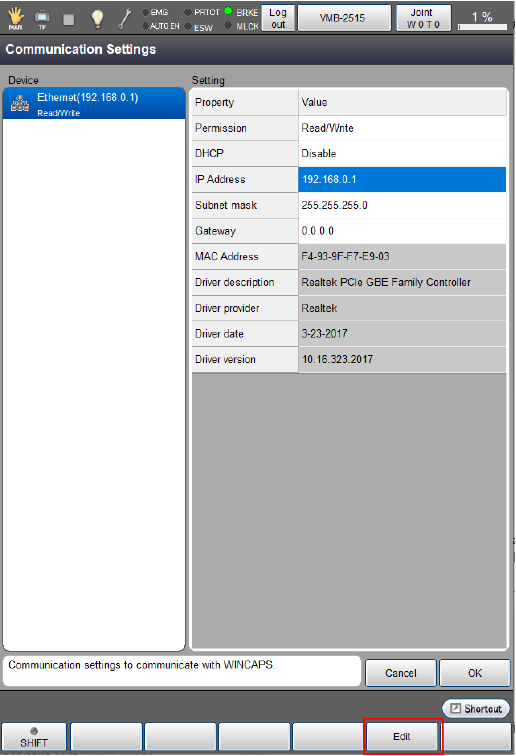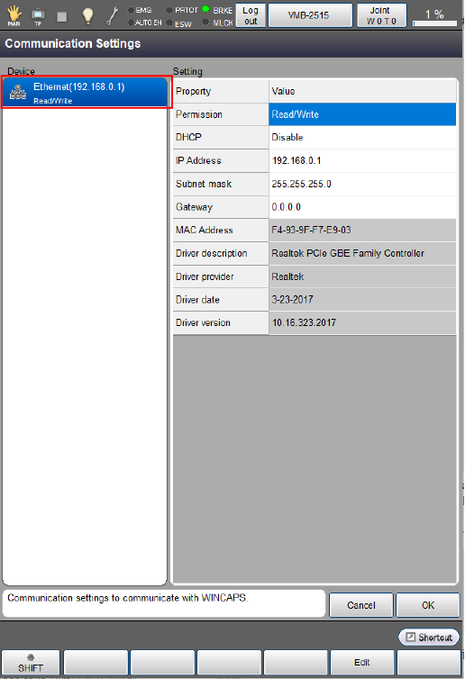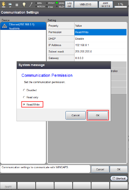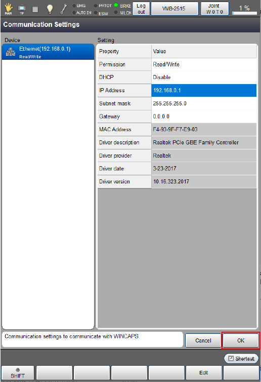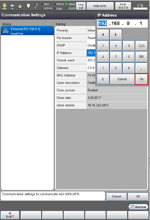 Set the robot controller so that the computer (WINCAPSIII) and robot controller can communicate through Ethernet. This setting is performed with the smart TP.
