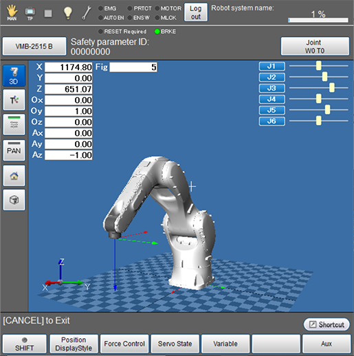 Displays 3D image of the robot during the machine lock. The 3D button turns blue while it is pressed. |
