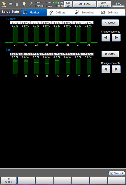 | Clear Max | Delete the maximum value registered in servo sate for each. |