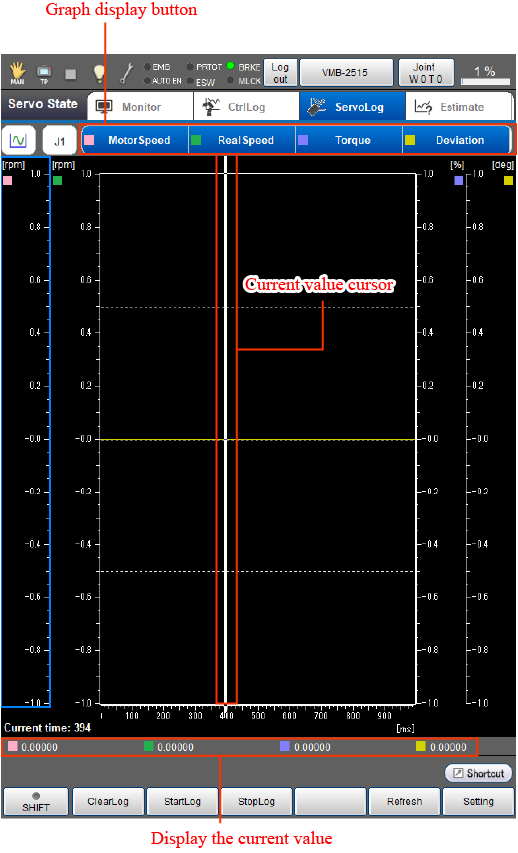 Press [Servo Log tab] to display the following [ServoLog] window.