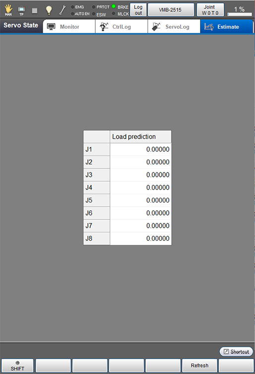 Operation path : [F2 Arm] - [F3 Servo State] - [Estimate tab]