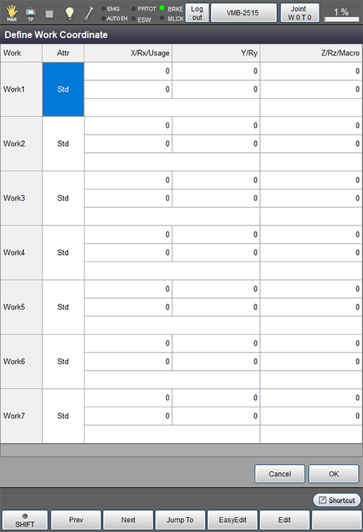 | [F4 Easy Edit] (*) | Work coordinates can be set by teaching three points with robot. |