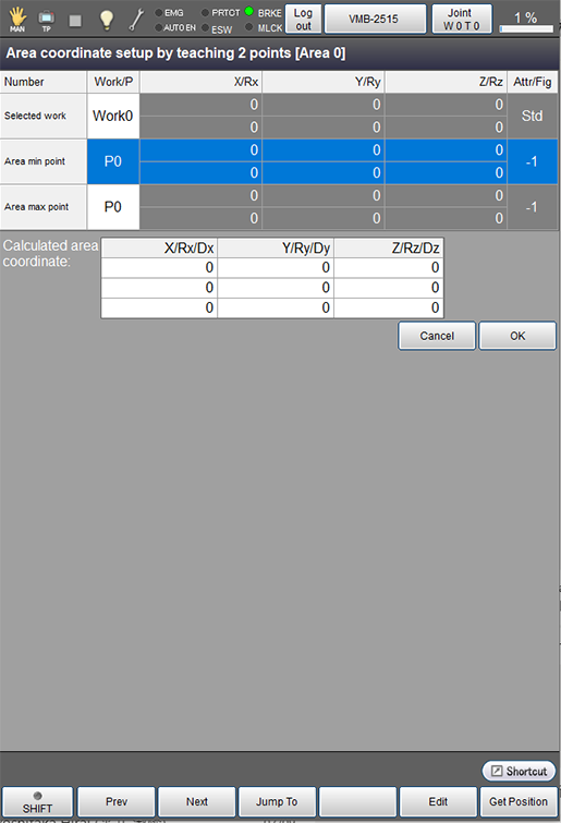 Press [F4 Easy Edit] to display the following [Area coordinate setup by teaching 2 points] window.