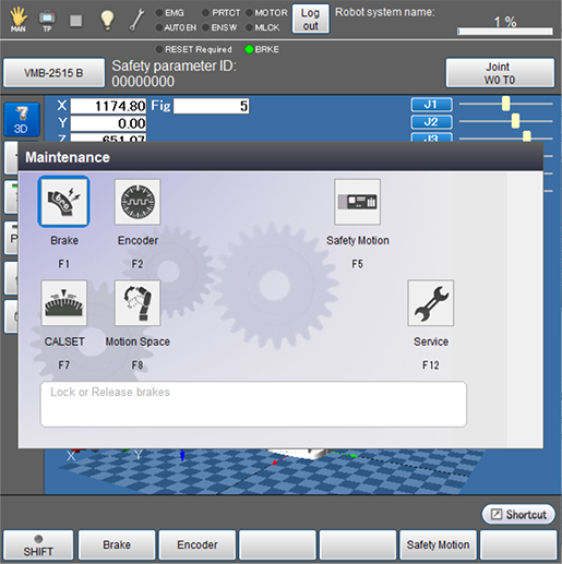 Display the menu associated with settings required to move robot and maintenance of the robot.