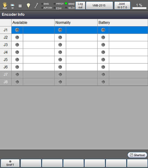 Operation path : [F2 Arm] - [F12 Maintenance] - [F2 Encoder] - [F1 Encoder Info]