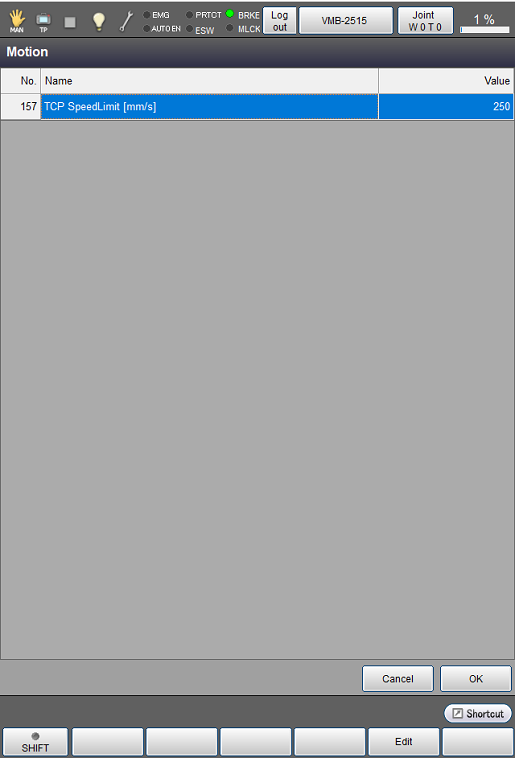 Set the speed limit for safety control (maximum speed at the manual operation).