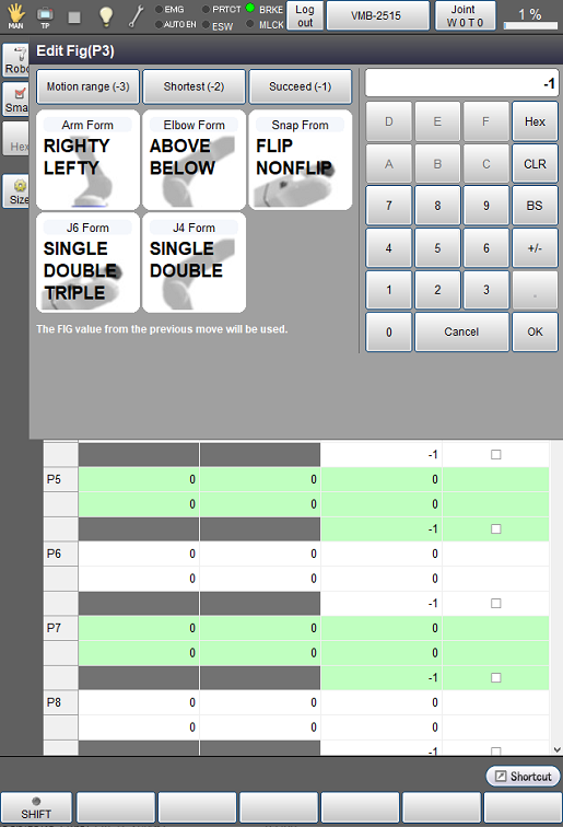 - Setting by pressing [Succeed (-1)] to use FIG value that was used in the previous move.
