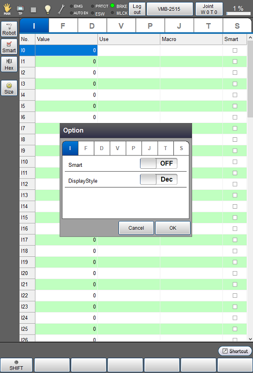 | [Smart] | In each variable, display only variable number whose checkbox for "Smart" is checked. |