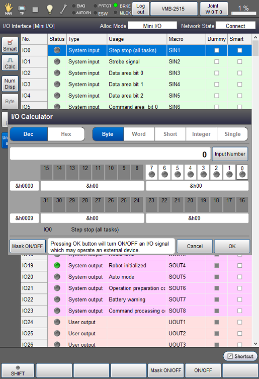 Tap [Calculation] button on the I/O Monitor to display the following [I/O Calculator] window.