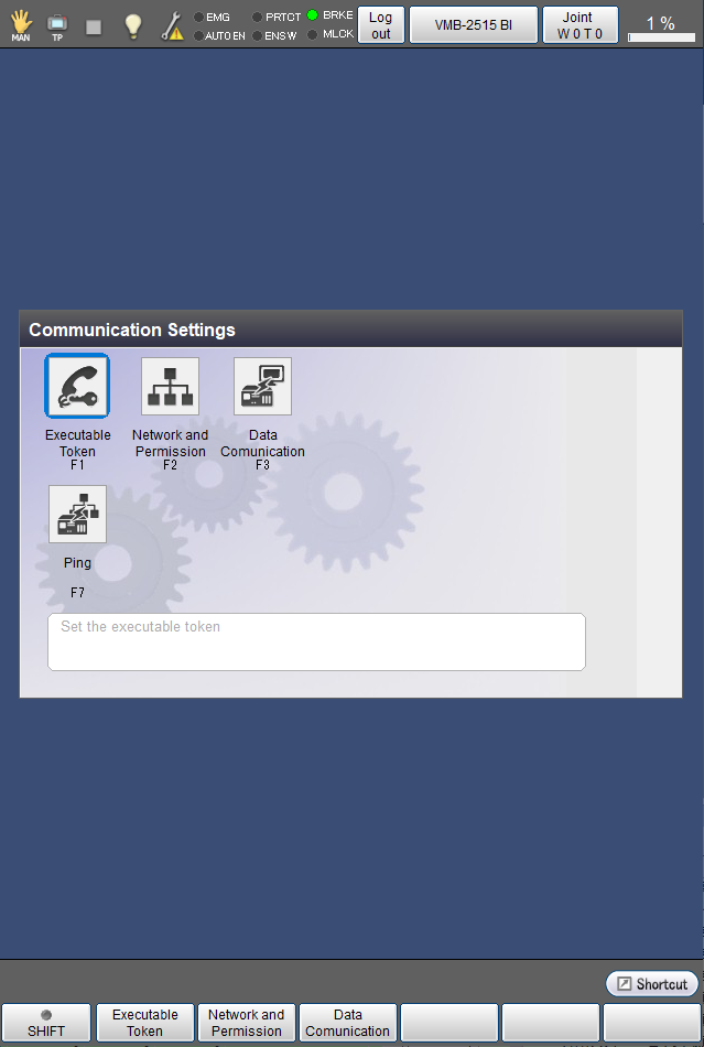 Tap [F5 Communication and Token] to display the following [Communication Settings] window.
