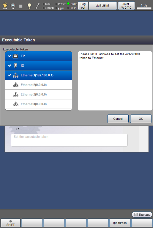 Tap [F1 Executable Token] to display the following [Executable Token setting] window.