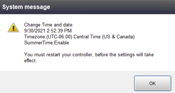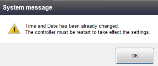 The system may ask you to restart the controller depending on the date and time that you have set. In this case, restarting the controller will complete the date and time setting.