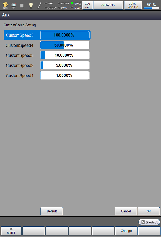 - If the upper CustomSpeed specifies the smaller value (slower speed) than the lower CustomSpeed, the value of the lower CustomSpeed will decrease according to the value of the upper CustomSpeed.