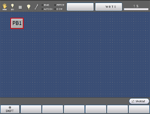 This examples shows the situation that TP panel stops once pressing the button while an emergency stop button is pressed.