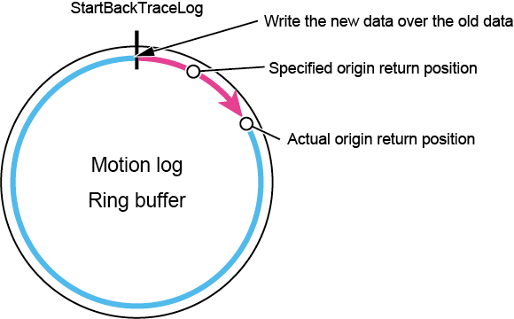 In some cases, the motion log to the specified origin return position may be deleted in the middle. In that case, the actual origin return position is the oldest record point among the motion log to the specified origin return position.