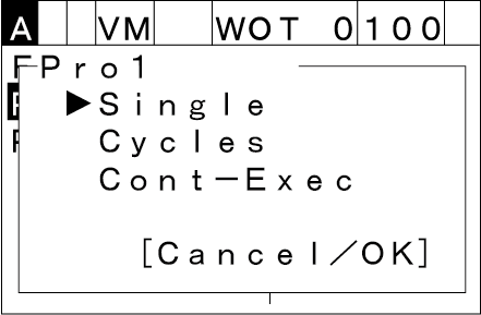 Choose a program running mode with the up and down cursor keys, then press [OK]. The selected program will run.