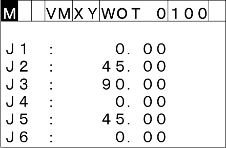 When the robot controller is turned on, the coordinates is expressed in joint variables by default as shown above.