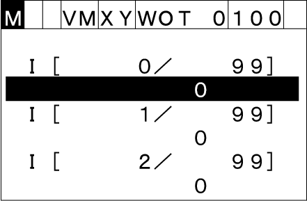 If you choose [JumpTo] with the up and down cursor keys and press [OK], then the following JumpTo screen appears. Enter the variable number you want to jump to, into the highlighted line and press [OK].