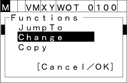 - For P, J, and T variables, five items (JumpTo, Move, Change, GetPos, and Copy) will display.