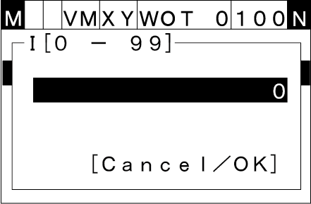 If you choose [Change] with the up and down cursor keys and press [OK], then the following variable setting window appears. Enter the desired value to be assigned to the variable and press [OK].