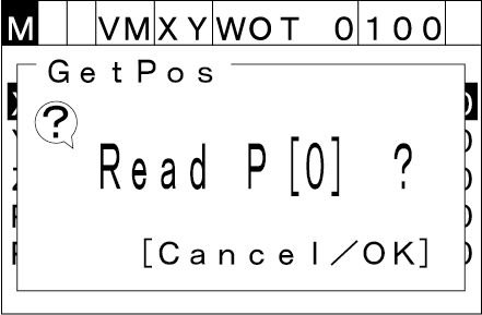 If you choose [GetPos] with the up and down cursor keys and press [OK], then the current position reading window appears as shown below.
