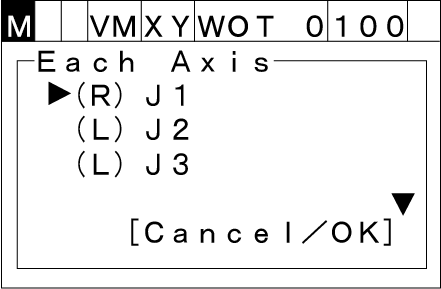 Choose an arbitrary joint with the up and down cursor keys, then press [OK]. (You can vertically scroll the screen with those keys.) Either of the following windows will appear.
