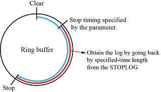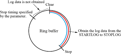 Note that the CLEARLOG starts the data logging only, and does not mean the start of the log data you can obtain. The range of log data you can obtain from the ring buffer is explained below.