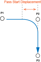 | @1~ | When the motion command value reaches the point away from the target position by the specified radius (Pass Start Displacement:1 mm or larger), the tool end moves on to the next motion. The radius is only a guide value, not the guaranteed value. |
