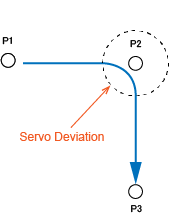 The motion to the P3 starts when the commanded motion value reaches P2.