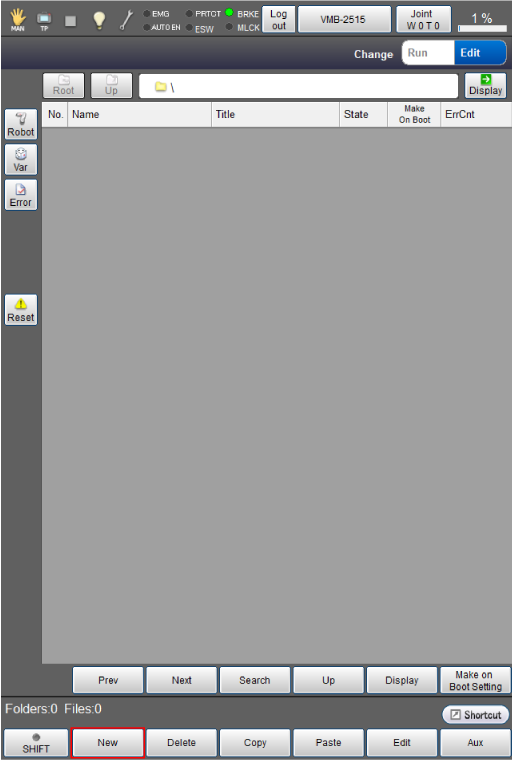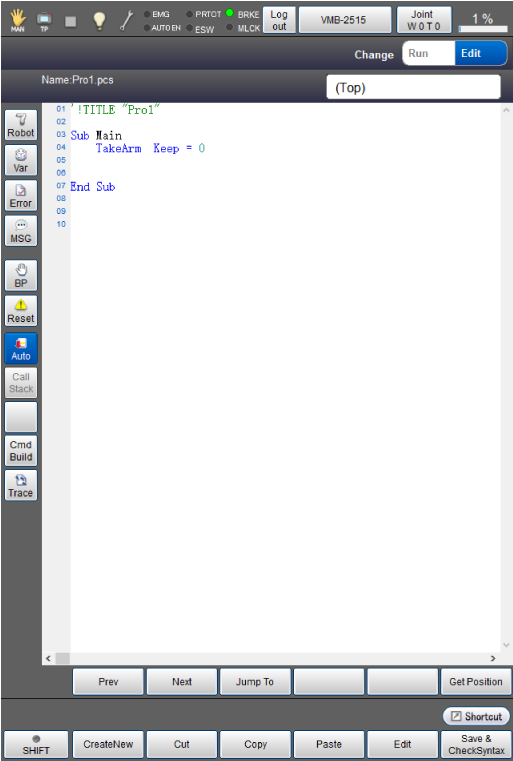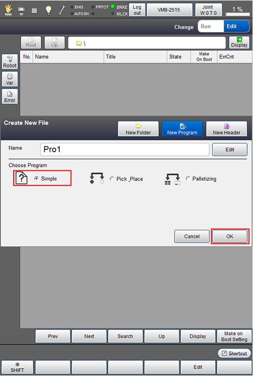 To create a new program, it is necessary to open the window for editing programs on the smart TP window.