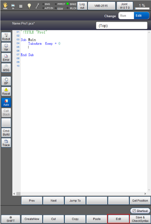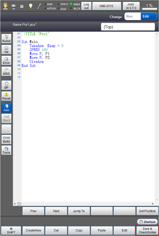 - In order to run the program written above, Position Variables (P1 and P2) shall be taught beforehand.
