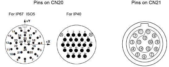 Note that the CN20 has pins connecting to the robot built-in solenoid valve, other than pins directly connecting to th CN21.