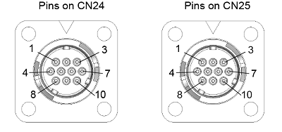 | Pins on CN24 | Pins and solenoid valve input on CN25 (allowable current/allowable voltage) |