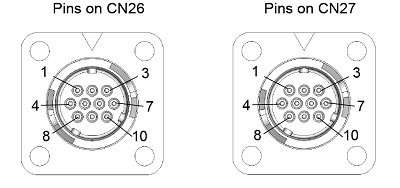 | Pins on CN26 | Pins and solenoid valve input on CN27 (allowable current/allowable voltage) |