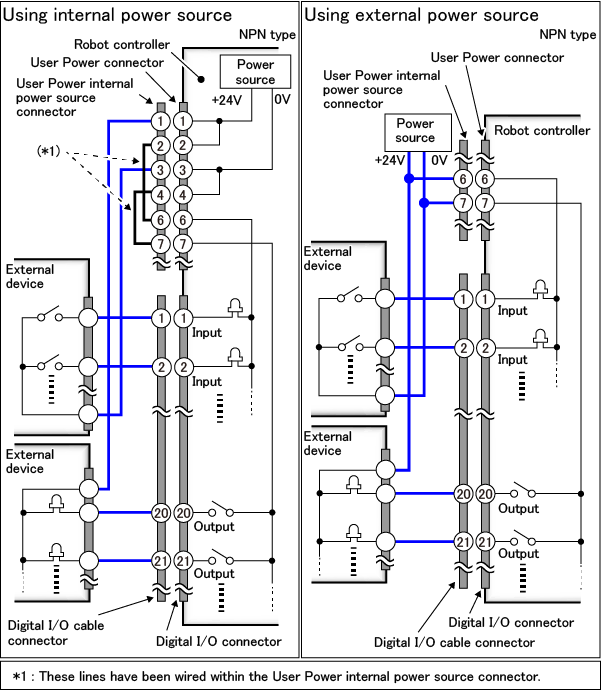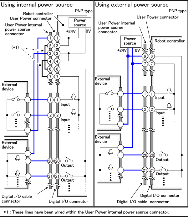 Among that, a system I/O equips several signals with different functions. The combination of these signals has been determined beforehand. There are two types of combination (allocations) and the I/O wiring diagram differs depending on the combination type. For details, refer to the following link.