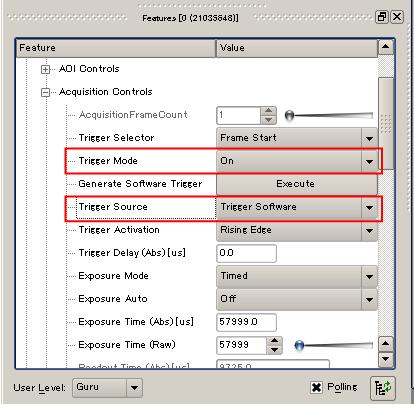 Set other usage conditions. (e.g. shutter, speed and gain)