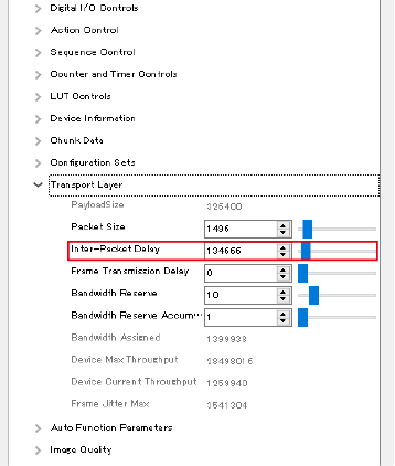 Setting “Inter-Packet Delay” to a higher value may slow the transfer of data from the camera and lower the frame rate.