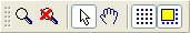These buttons change the Layout window magnification, toggle the grid display on and off, etc.